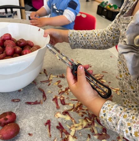 Matglede er viktig for oss i Akrobaten, og det er fint å gi barna erfaringer om hvor maten kommer fra. Gjennom utforskning, lek, samtale og aktivitet, har barna nå vært med på hele prosessen - fra å sette potet til å spise den. Fra jord til bord.