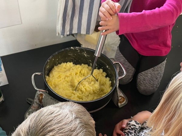 Forberedelsene startet allerede i vår, da vi fikk sette potet i besøkshagen vår her på Stadsbygd. Nå har vi tatt opp poteten, vaska den og brukt den til mye spennende. Vi har laget deilige matretter, potetgull og laget potettrykk.