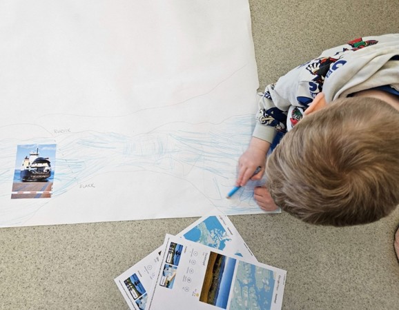 Storbarnsgruppa har laget et kart over hele Stadsbygd med bilder av kjente og kjære bygninger, steder og husene til alle barna.