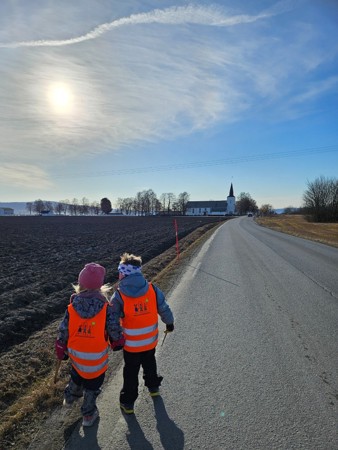 På mandag dro storbarnsgruppa til Kystens Arv. Noen tok bena fatt, mens andre satt på på el-sykkelen. Spreke barn i nydelig og frisk vårluft. På turen fikk vi oppleve nærmiljøet på nært hold.