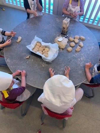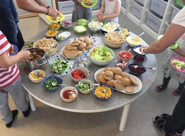Barna er delaktige i matlagning. Vi bruker alle sanser i arbeidet med mat, og serverer varmmat to ganger i uka.